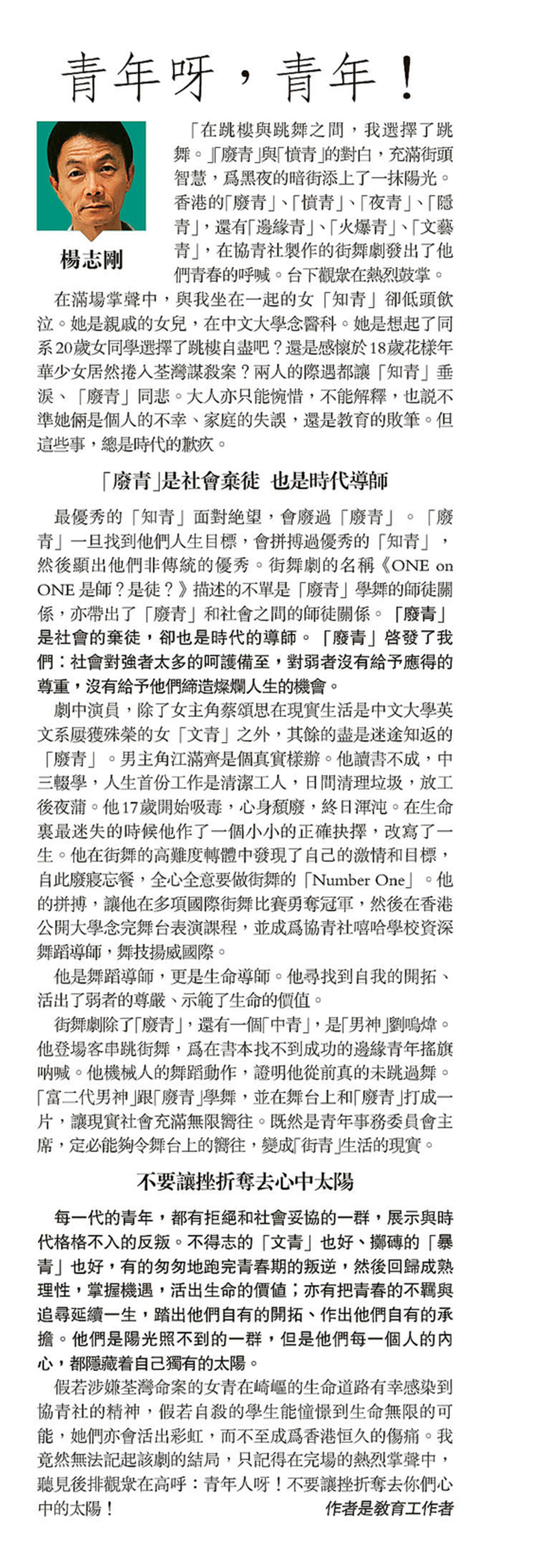 | 22-4-2016 | 青年呀,青年! | 《明報》 Ming Pao |