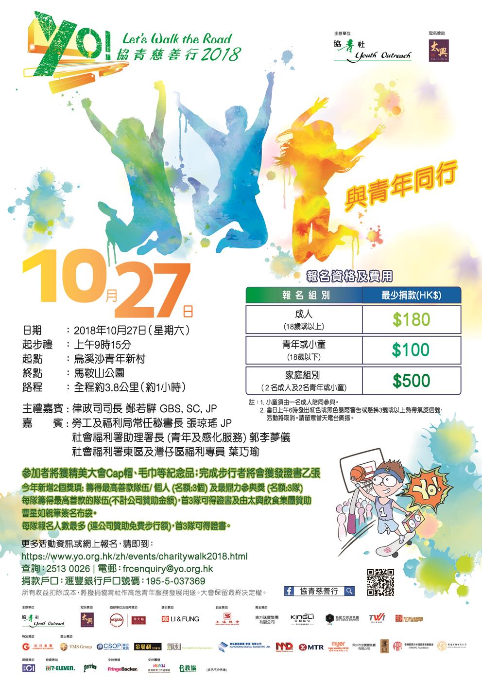 是次步行籌款所得款項將用作幫助高危青年成為正向青年,協助他們尋找自我,重建自尊自信。
